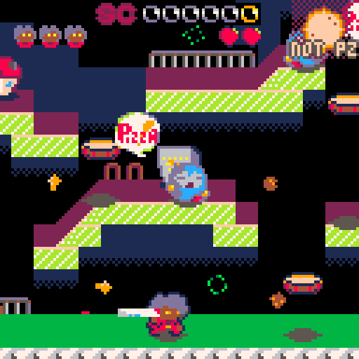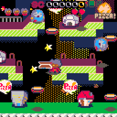 ⬅️➡️...cursor move ❎...jump 🅾️...throw a pizza (+⬆️ upper throw , +⬇️ down throw)